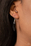 A gorgeous collection of glassy black beads trickle along a shimmery silver chain down the chest in a refined fashion. A lobster clasp hangs from the bottom of the design to allow a name badge or other item to be attached. Features an adjustable clasp closure.