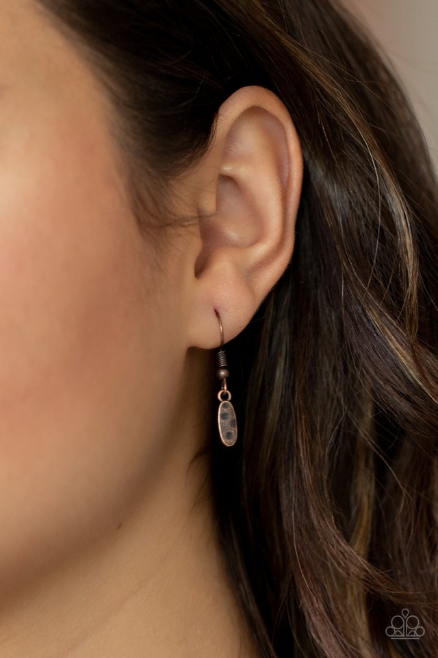 Stamped in a decorative floral pattern, an imperfect copperdisc swings from the bottom of a lengthened copper chain. Copper chains and hammered copper beads stream from the bottom of the rustic pendant, creating a flirty fringe. Features an adjustable clasp closure.