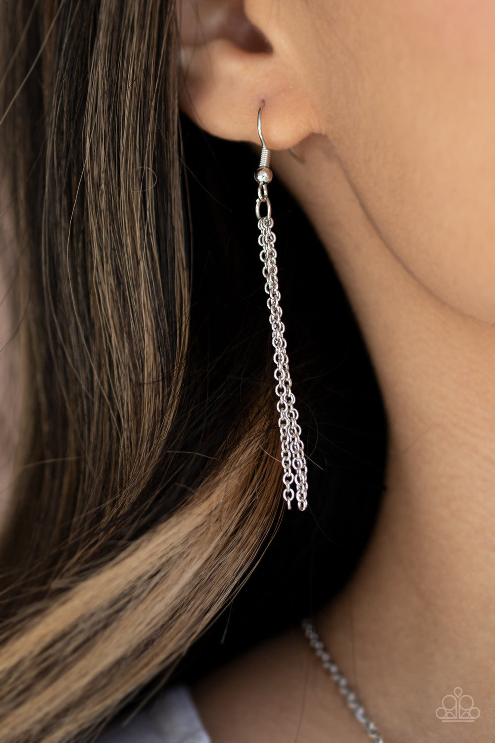 Threaded through a rod, an ethereal purple stone sits inside a rectangular silver fitting, giving way to a shimmery silver chain tassel for a tranquil finish. Features an adjustable clasp closure.